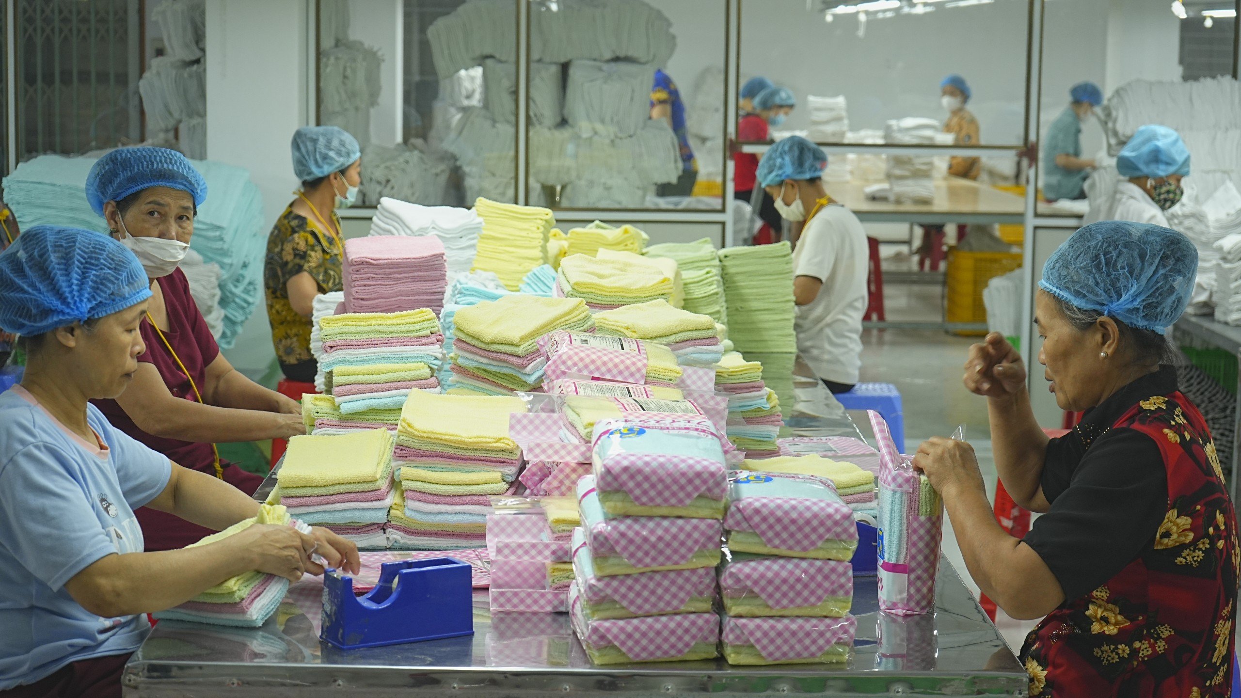 タイビンのタオル産地には、大小さまざまなタオル工場がありますが、それぞれに独自の特色があります。
